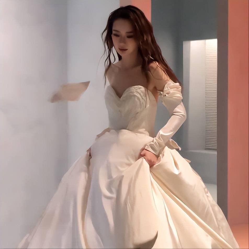 视频的一开始,戚薇提着自己的白色礼裙走了进来,并且画面的整体色调都偏暖一些,