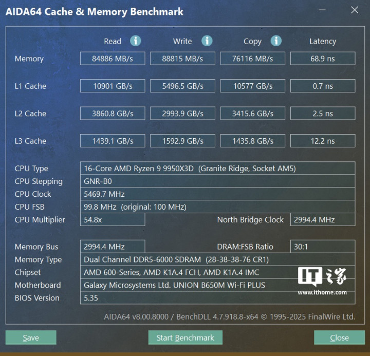这个表现就和IT之家在锐龙99950X3D处理器首发评测中使用X870旗舰主板的测试结果基本一致了,只是CPU频率略微保守了一点点,但温度表现依然很稳,也就是说影驰联盟B650MWi-Fi黑武士PLUS主板搭配360水冷,是能够轻松压住锐龙99950X3D这颗性能猛兽的。