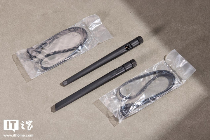 配件方面,包装内附有1对Wi-Fi6天线、2条SATA供电线、产品说明书等。
