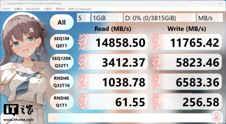 经过实测顺序读写速度能够跑满硬盘标称的最大速率,4KQ1K1队列的读写速度也达标,但是高队列深度下的成绩并未跑满,考虑到PCIe5.0硬盘对于散热的强需求,更建议大家使用自带散热马甲的PCIe5.0固态硬盘。